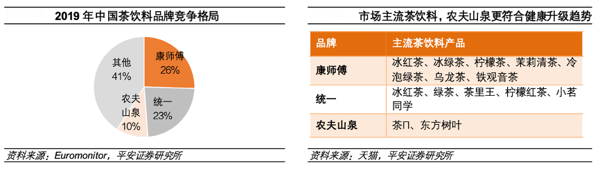 經(jīng)典案例:根據(jù)Euromonitor、天貓、平安證券研究所等綜合資訊表明,當(dāng)市場(chǎng)被康師傅、統(tǒng)一的冰紅茶、冰綠茶等有糖茶占據(jù)主導(dǎo)時(shí),農(nóng)夫山泉在 2011 年推出主打無糖概念的“東方樹葉”,最初上市時(shí)多次上榜“最難喝”飲料榜,后期“0 糖 0 卡”概念興起后,提前布局多年的東方樹葉迎來爆發(fā),據(jù) AC 尼爾森數(shù)據(jù)顯示,東方樹葉占據(jù)了50%以上的市場(chǎng)份額,自 2019 年起連續(xù)多年成為無糖茶第一品牌。