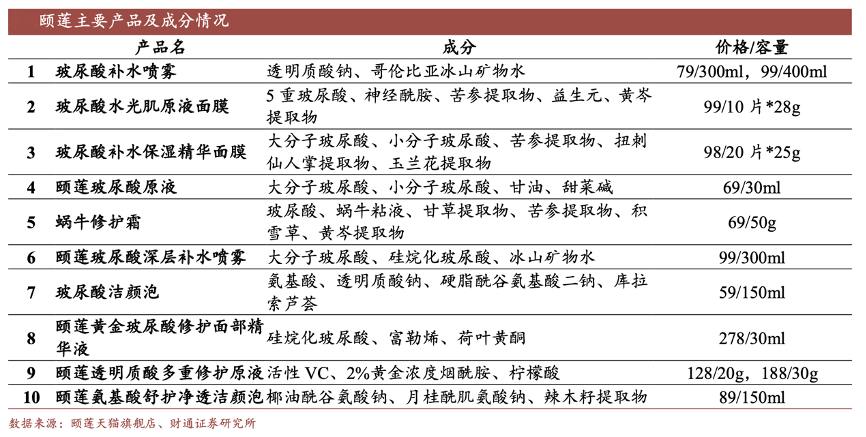 經典案例:根據頤蓮天貓旗艦店、財通證券研究所等綜合資訊表明,玻尿酸經過不斷衍化,在最初的保濕補水功能上衍生出抗氧化、抗炎、修復等功 能,頤蓮順應形勢研究“玻尿酸+”的概念,比如通過玻尿酸+富勒烯等有效成分, 實現更多的產品功能,在保濕基礎上疊加抗老性能。