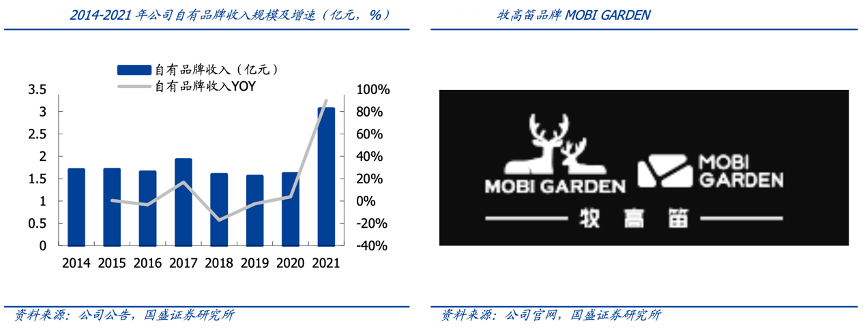 經典案例:根據公司公告、公司官網、國盛證券研究所等綜合資訊表明,牧高笛以自有品牌“牧高笛 MOBI GARDEN”進行銷售,業務規模高速擴張。國內露營市場需求高速增長,公司國內自有品牌業務高速擴張,業務銷售收入 2021 年為 3.06 億元(+90%),2022H1 銷售達 3.46 億元(+182%),對公司總收入的貢獻從 2020 年的25.0%上升至 2022H1 的 40%。其精準定位“精致露營”概念,敏銳把握國內消費市場需求,2022年以來精致露營場景相關產品銷售高速增長。