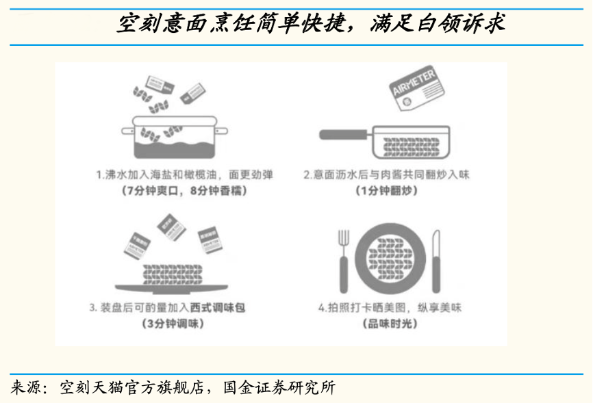 經典案例:根據空刻天貓官方旗艦店、國金證券研究所等綜合資訊表明,面對新銳白領,這類人群往往處于事業奮斗期,生活節奏快,同時又是品質生活的實踐者,空刻強關聯“一人食”、“15 分鐘米其林大餐”“速食推薦”等關鍵詞,吸引消費人群眼球。