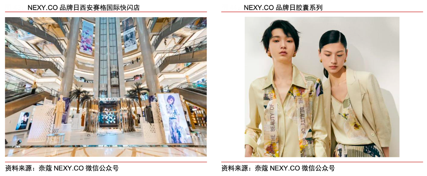 經典案例:根據奈蔻NEXY.CO微信公眾號、中信證券研究部等綜合資訊表明,2021 年 7 月 12 日到 7 月 18 日品牌周,奈蔻在上海、西安、成都、南京等城市開設線下快閃店,開展智 美探覓主題大秀,并攜手代言人王珞丹同步推出品牌日膠囊系列。該系列將品牌花“木蘭 花”融入產品設計,贊頌當代智美女性淡然、堅韌的品格意志,并全面升級天然材料和環保工藝,融合智美定位與環保理念。
