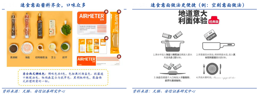 經典案例:根據天貓、安信證券研究中心等綜合資訊表明,一般自己做意面方法需要的原料眾多,相對速食意面較為繁雜,而速食意面有效解決了烹 飪的諸多過程,同時提供豐富多樣的口味,讓消費者在家也能做出餐廳級意面,受眾人群更廣。