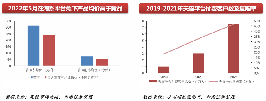 經典案例:根據魔鏡市場情報、公司招股說明書、西南證券等綜合資訊表明,蕉下公司為國內首家專注防曬的中高端品牌,通過差異化競爭占據消費者心智,產品價格方面,公司產品定價不僅高于市場均價,相較于頭部競爭者均價亦較高。