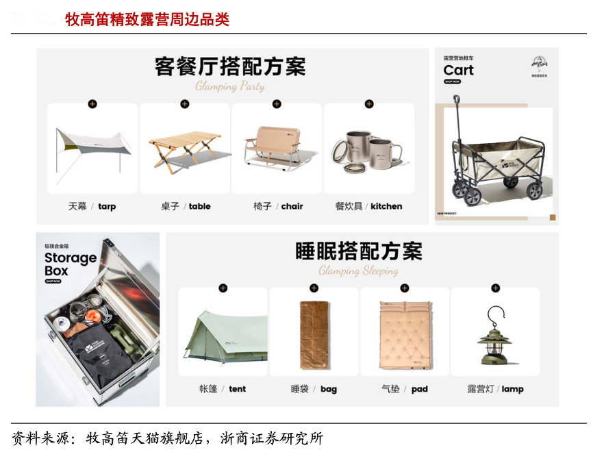 經(jīng)典案例:根據(jù)公司官網(wǎng)、天貓旗艦店、浙商證券研究所等綜合資訊表明,2003年,牧高笛公司憑借一款“冷山”帳篷進(jìn)入中國(guó)市場(chǎng),開(kāi)啟了自主品牌的發(fā)展之路。2009年公司切入戶外鞋服領(lǐng)域,并在 2018 年劃分大牧、小牧雙品牌,分事業(yè)部運(yùn)營(yíng)。其中的大牧品牌秉持“露營(yíng)專業(yè)主義”理念,主打戶外露營(yíng)帳篷及裝備,涵蓋高海拔露營(yíng)、徒步露營(yíng)、公園休閑、精致露營(yíng)和旅行等戶外場(chǎng)景。