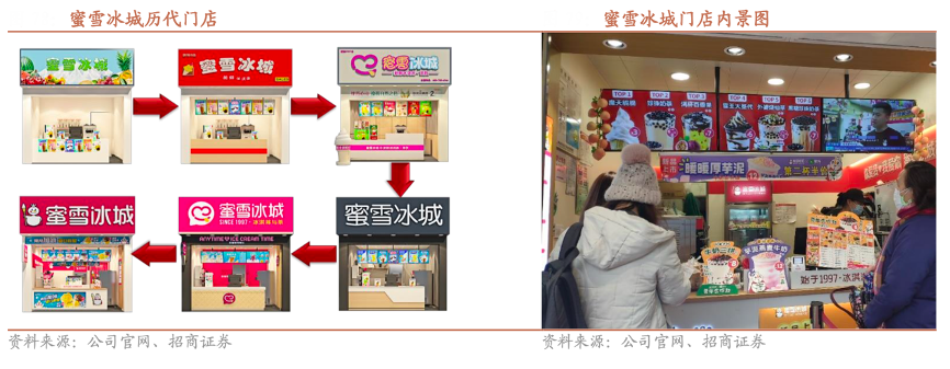 經(jīng)典案例:根據(jù)公司官網(wǎng)、招商證券等綜合資訊表明,2018年,蜜雪冰城第六代門店采用飽和度高的艷色、大而浮夸的字體、高密度的海報和廣告牌對消費者形成視覺沖擊,強化了品牌形象,奠定了品牌調(diào)性。自創(chuàng) IP“雪王”旨在打造品牌超級符號,白胖的身子和紅彤彤的背景是標志性的“雪王”LOGO,設(shè)計色彩鮮艷較抓眼球,塑造品牌力,占領(lǐng)消費者記憶心智。