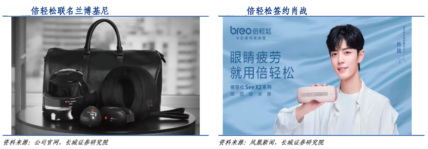 經(jīng)典案例:根據(jù)公司官網(wǎng)、鳳凰新聞、長城證券研究院等綜合資訊表明,2021 年 5 月 31 日,倍輕松公司宣布明星肖戰(zhàn)成為其首位全 球品牌代言人,在微博、朋友圈、抖音多媒體組合曝光,第一條預(yù)告微博半小時內(nèi)點(diǎn)贊破20 萬,官宣微博點(diǎn)贊量突破 215 萬。相關(guān)微博話題沖上熱搜,閱讀量突破 13 億。除 了曝光效果,倍輕松的點(diǎn)擊互動率達(dá)到行業(yè)均值的 10 倍之多。
