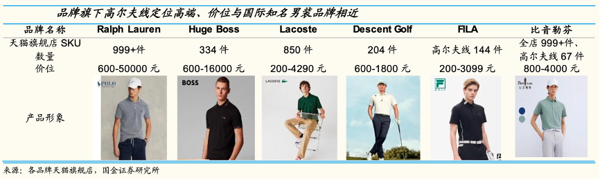 經典案例:根據朝向白皮書、飛瓜數據、國金證券研究所等綜合資訊表明,比音勒芬品牌從高爾夫差異化切入高端服飾賽道,核心客群定位 25~40 歲高收入男性,多年以來其堅持高品質、高品位、高科技和創新的“三高一新”產品設計研發理念,客戶粘性高、復購率高。