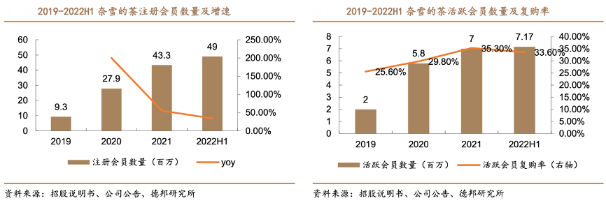 經典案例:根據招股說明書、公司公告、德邦研究所等綜合資訊表明,奈雪的茶2019 年 9 月推出品牌會員體系,設立 1-6 級分階獎勵機制,會員積分免費兌換品牌產品。2022 年中報,奈雪的注冊會員數量達到 4900 萬名,同比增長 34.25%,其中活躍會員數 717 萬名,活躍會員復購率達到 33.60%。
