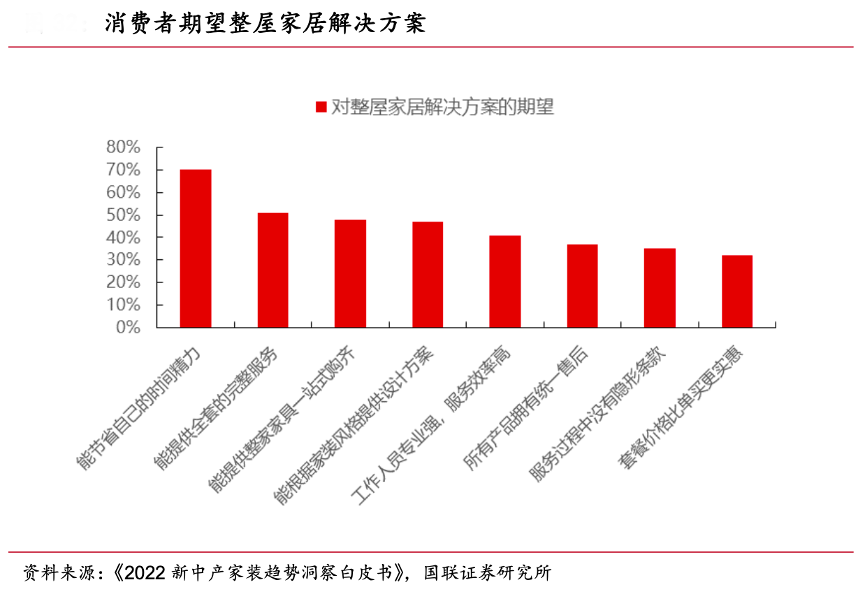 經典案例:根據艾瑞咨詢《2022 新中產家裝趨勢洞察白皮書》、國聯證券研究所等綜合資訊表明,中產用戶在裝修過程中,面臨的最大三個痛點是消耗腦力及體力、裝修風格不統一及預算超支。近 9 成中產用戶期望品牌提供一站式解決方案,省心、個性化定制是這一群體的核心訴求。