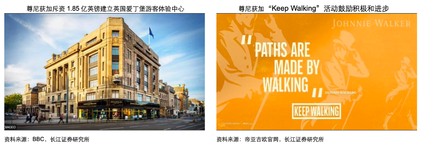 經(jīng)典案例:根據(jù)BBC、帝亞吉?dú)W官網(wǎng)、長江證券研究所等綜合資訊表明,帝亞吉?dú)W將品牌與慶祝活動(dòng)融合,賦予品牌特殊意義。例如在 2020 年慶祝尊尼獲加品牌成立 200 周年之際,邀請 23.5 萬名游客來到英國愛丁堡游客體驗(yàn)中心——尊尼獲加王子街,該旅游景區(qū)耗資超過 1.85 億英鎊,配備商店、威士忌酒窖和兩個(gè)屋頂酒吧。尊尼獲加還在 2021 年 10 月推出全新的“Keep Walking”活動(dòng),在全球 50 多個(gè)國家和地區(qū)的屏幕、場所、社交媒體和廣告空間中進(jìn)行宣傳。