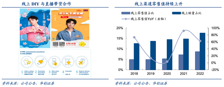 經典案例:根據公司官網、華創證券等綜合資訊表明,周大福公司入駐電商平臺,截至 2022 財年,其與多位藝人、主播合作直播,吸引粉絲群體并擴大受眾,與李佳琦合作慈善公益直播活動,30 秒內賣出約 5000 件珠寶。