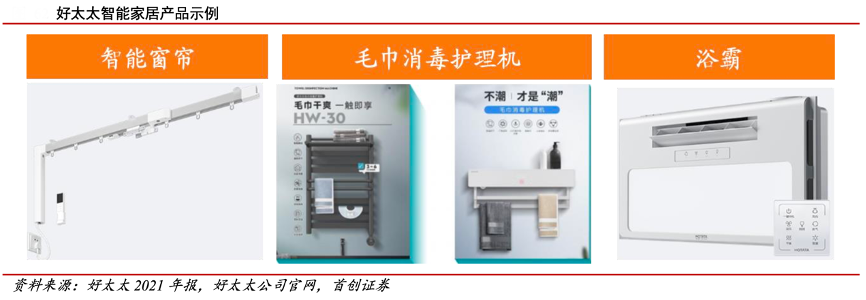 經典案例:根據好太太2021年報、好太太公司官網、首創證券等綜合資訊表明,好太太自 2016 年就開始從單一賽道向多賽道智能家居布局,公司依托核心產品智能晾衣機與智能鎖,圍繞智能家居領域展開布局,產品逐步延伸至智能窗簾、電熱毛巾架、智能面板、開關等智能家居產品。2020 年初,“好太太”商標獲準在智能家居類別應用同一品牌,原智能門鎖品牌“科徠尼”更名“好太太”,使得公司在資源投放、營銷活動等方面更加協同高效;2022 年初,為更加聚焦年輕人群織物護理需求,公司推出子品牌“曬客”搶奪年輕消費者市場機遇。