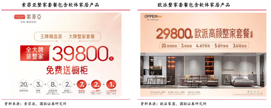 經典案例:根據索菲亞、歐派家居、國聯證券研究所等綜合資訊表明,歐派、索菲亞等進軍整家領域,對軟體成品企業造成部分沖擊。歐派衣柜事業部 2021 年推出的 29800 元整家套餐,除了包含 20 平米的價值 19800 元的定制柜子外,還包含 10 件價值為 10000 元的軟體成品家具,軟體產品以接近成本價出售。