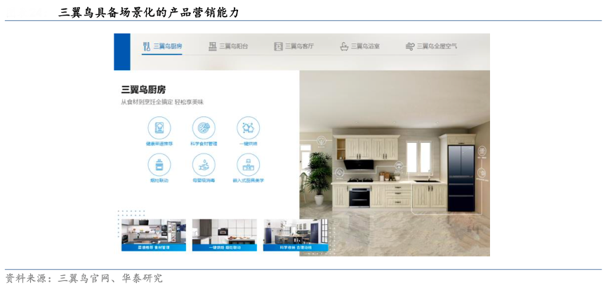 經典案例:根據三翼鳥官網、華泰研究等綜合資訊表明,“三翼鳥”是海爾智家旗下場景品牌,2020年正式推出,其從賣產品到賣場景的新賽道,提供陽臺、廚房、浴室、全屋空氣、全屋用水、視聽等智慧家庭全場景解決方案。同時依 托海爾智家體驗云平臺,連接用戶、企業、生態方,創造因需而變的個性化方案;以“1+N”能力保障落地,為用戶定制覆蓋衣、食、住、娛需求的美好生活,讓家庭物聯網走進千家萬戶。