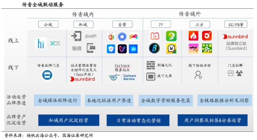 經典案例:根據揚帆出海公眾號、國海證券研究所等綜合資訊表明,傳音作為手機起家的硬件廠商,從操作系統(tǒng)、應用商店開始,拓展到工具等基礎產品矩陣,目前已經憑借手機與移動互聯(lián)網業(yè)務,打通了非洲全部 54 個國家全鏈路運營,構建了完整的流量流轉渠道,具備廣泛被直接觸達的第一手非洲互聯(lián)網 用戶,以及與Google、Meta等巨頭相當?shù)牧髁扛采w能力。