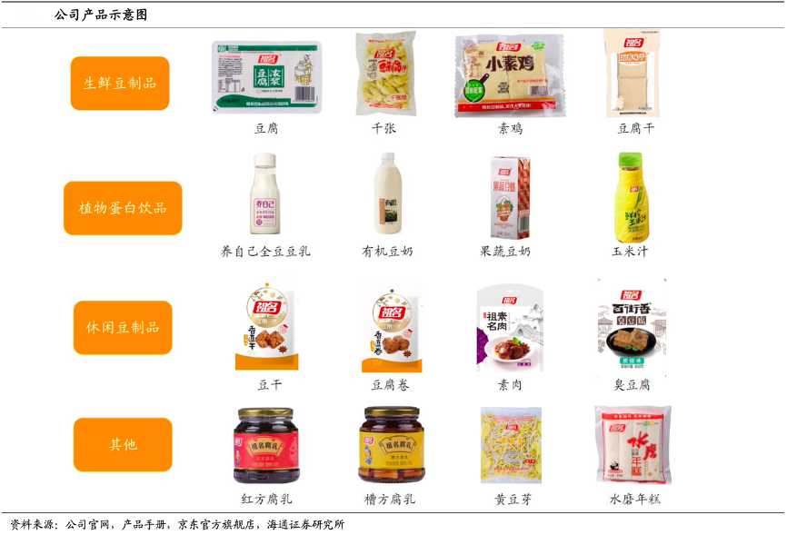 經典案例:根據公司官網、產品手冊、京東官方旗艦店、海通證券研究所等綜合資訊表明,祖名公司形成了以生鮮豆制品為基礎、植物蛋白飲品和休閑豆制品為發展重點、其他類產品為補充的產線格局。由于公司產品具有多樣性,不同產品間能產生良好的協同效應,能夠提高設備利用率、降低采購成本、提高產品品質,不同產品間還可以實現資源共享,滿足消費者多樣化的消費需求。