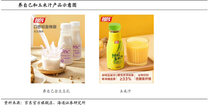 經典案例:根據京東官方旗艦店、海通證券研究所等綜合資訊表明,祖名公司在 2022 年引進自動化瓶裝豆奶生產線,以及多套國內外領先的高端自動化設備等,并開發發酵植物蛋白飲品、咖啡豆乳、果蔬豆乳等新品;同時公司在 2022 年推出新品鮮榨玉米汁,玉米添加量大于 33%,是公司首款谷物飲品,口感濃郁自然、低脂肪、含膳食纖維。