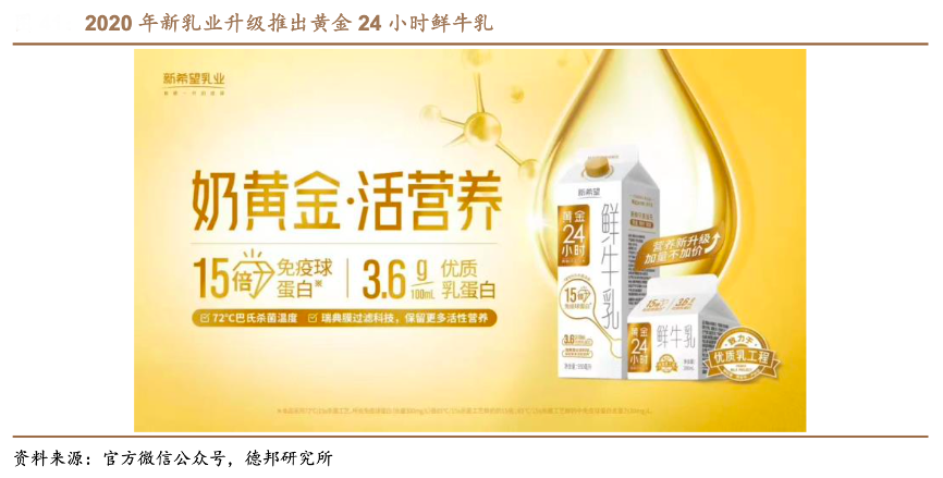 經典案例:根據官方微信公眾號、德邦研究所等綜合資訊表明,新乳業作為業界首個“只賣當天” 的產品,24 小時鮮牛乳與市場上其他保質期一般為六個月的產品相比,具有 24 小時限時銷售的最新鮮、原奶標準 10 倍于國家標準的最安全、低溫殺菌的最營養 和零添加的最天然等突出優點,上市后好評如潮。