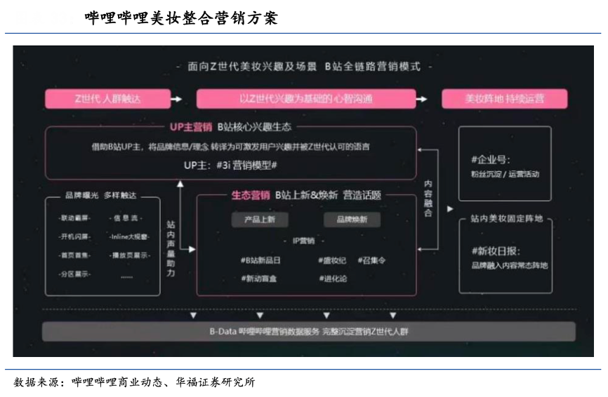經典案例:根據嗶哩嗶哩商業動態、華福證券研究所等綜合資訊表明,針對營銷方案,B 站在 AD TALK 2022 營銷大會上 B 站提出要成為“品牌成 長的加油站”,為幫助品牌更精準地觸達消費者,B 站發布了“MATES 人群模型”, 幫助品牌更準確識別目標用戶,提供科學的投前策略和投后度量,為品牌提供更有確定性的營銷結果。