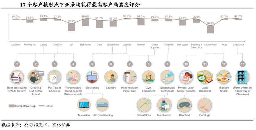 經典案例:根據公司招股書、東北證券等綜合資訊表明,亞朵憑借先進的服務數字化技術和強大的產品服務開發能力在每個關鍵的客戶服務接觸點提供個性化服務,將線下場景與數字化技術相結合,追蹤客戶需求,向 A-Card 會員提供 定制化住宿服務。基于優質的客戶體驗和滿意度,亞朵形成較強的客戶黏性,2021 年二次預訂的會員比例達 52.8%。