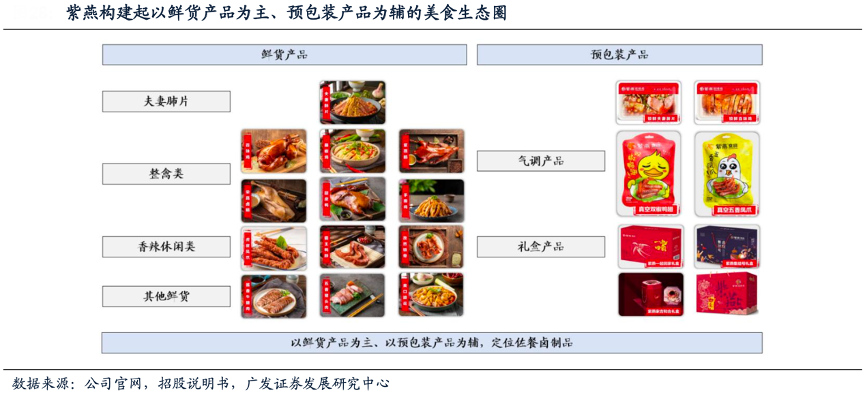 經典案例:根據公司官網、招股說明書、廣發證券發展研究中心等綜合資訊表明,佐餐鹵制品主要消費需求集中于家庭、餐飲等正餐場景,紫燕食品以夫妻肺片和整禽類大單品為核心,通過持續的研發投入形成覆蓋多種禽畜類及素菜的產品矩陣,憑借集中化整合生產基地帶來更標準穩定的產品品質。