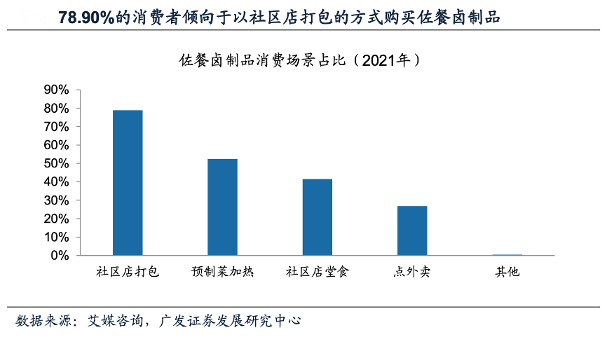 經典案例:根據(jù)艾媒咨詢、廣發(fā)證券發(fā)展研究中心等綜合資訊表明,佐餐鹵制品渠道以菜場鋪位、社區(qū)門店、沿街門店店為主,方便居民在社區(qū)周邊生活圈購買。根據(jù)艾媒咨詢調研,78.90%的消費者傾向于以社區(qū)店打包的方式購買佐餐鹵制品。