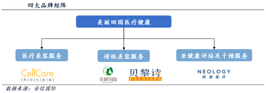 經典案例:根據安信國際等綜合資訊表明,美麗田園經過 30 年沉淀,打造了多品牌組合,提供多元化服務涵蓋傳統美容服務需求(品牌:美麗田園、貝黎詩)、醫療美容服務需求(品牌:秀可兒)和亞健康評估及干預服務需求(品牌:研源)。