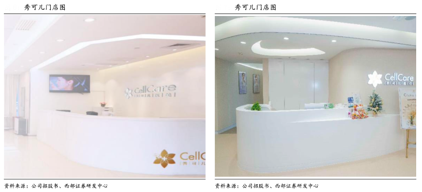 經(jīng)典案例:根據(jù)公司招股書、西部證券研發(fā)中心等綜合資訊表明,美麗田園公司醫(yī)療美容服務(wù)主要集中在非外科手術(shù)項(xiàng)目,主要包括能量儀器服務(wù)與注射服務(wù)。秀可兒主要在全國一二線城市的地標(biāo)性商業(yè)中心布局,定位高品質(zhì)醫(yī)美服務(wù)。秀可兒門店在條件允許情況下,還會提供重瞼手術(shù)、抽脂手術(shù)、脂肪填充手術(shù)等手術(shù)類醫(yī)療美容服務(wù)。目前該門店服務(wù)涵蓋超 300 個 SKU,能夠提供 10 類能量儀器與注射服務(wù),為客戶提供正規(guī)、安全、專業(yè)的產(chǎn)品與服務(wù)。
