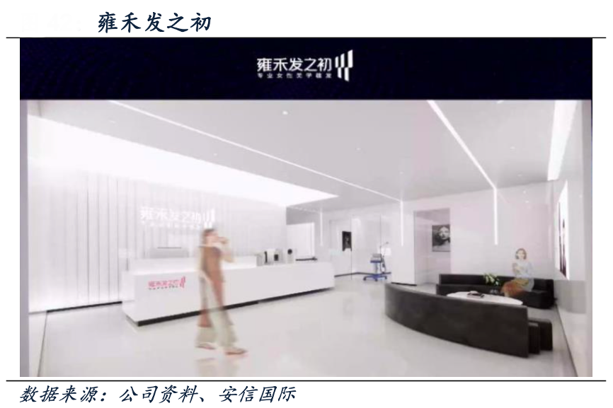 經典案例:根據公司資料、安信國際等綜合資訊表明,“女性+美學”是雍禾發之初品牌的兩個關鍵詞,該品牌于2021 年底推出并專注于女性植發,創新構建女性美學毛發診療體系,提供包括坐位取發應用、長發取發、長發種植、舒 適化植發臨床應用等服務。