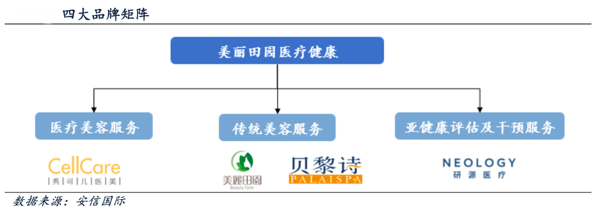 經典案例:根據安信國際等綜合資訊表明,經過30年沉淀,美麗田園公司打造多品牌組合,提供多元化服務涵蓋傳統美容服務需求(品牌:美麗田園、貝黎詩)、醫療美容服務需求(品牌:秀可兒)和亞健康評估及干預服務需求(品牌:研源)。
