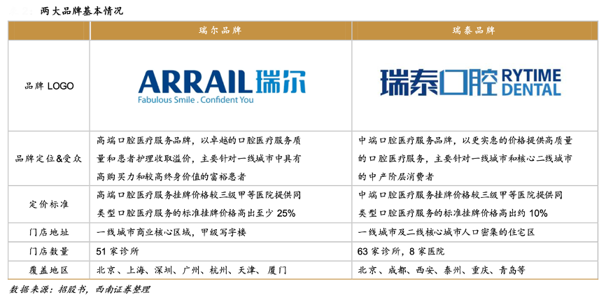 經(jīng)典案例:根據(jù)招股書、西南證券等綜合資訊表明,針對不同消費(fèi)群體需求,瑞爾集團(tuán)將業(yè)務(wù)板塊拆分成針對一線及新一線富裕消費(fèi)者的高端口腔醫(yī)療服 務(wù)——瑞爾牙科和為華北、華東、華南以及西區(qū)一線和核心二線城市中產(chǎn)階層服務(wù)的中端口腔服務(wù)瑞泰口腔。截至 2022 年 9 月 30 日,全國共有 51 家瑞爾診所,主要分布在北京、上海、深圳、廣州、杭州、天津和廈門七個(gè)城市。