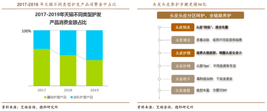 經典案例:根據艾瑞咨詢、德邦研究所等綜合資訊表明,隨著 Z 世代成為消費者主流人群,其對顏值的注重延伸至頭發護理,傳統的基礎護發產品已難以滿足消費者需求,養發服務行業消費浪潮興起,發膜、精油、精華等進階型的護膚產品逐漸興起。新時代養發理念中,將頭發和頭皮分區養護,步驟更為精細化。