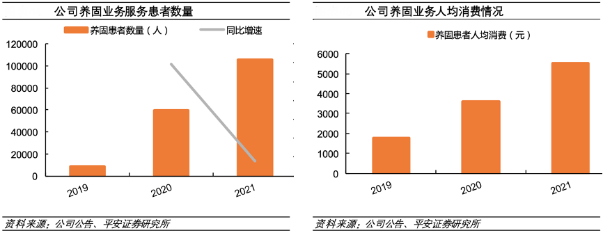 經(jīng)典案例:根據(jù)公司公告、天安證券研究所等綜合資訊表明,雍禾醫(yī)療2021年養(yǎng)固業(yè)務(wù)服務(wù)患者的數(shù)量達(dá)到 10.5 萬人,增速達(dá)到 78%,患者人數(shù)快速增長。 同時公司養(yǎng)固業(yè)務(wù)人均消費(fèi)不斷增加,2021年為 5531元,公司養(yǎng)固業(yè)務(wù)量價(jià)雙升。
