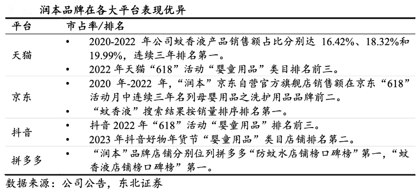 經(jīng)典案例:根據(jù)公司官網(wǎng)、東北證券等綜合資訊表明,潤本股份公司目前旗下僅有“潤本”品牌,“潤”寓意 潤澤和呵護,“本”寓意本源和人生本初,品牌在嬰童護理和精油產(chǎn)品系列均強調(diào)天然草本植物提取液,塑造安全、溫和以及天然的品牌形象,深度貼合消費者對嬰童用品和個護產(chǎn)品的訴求。