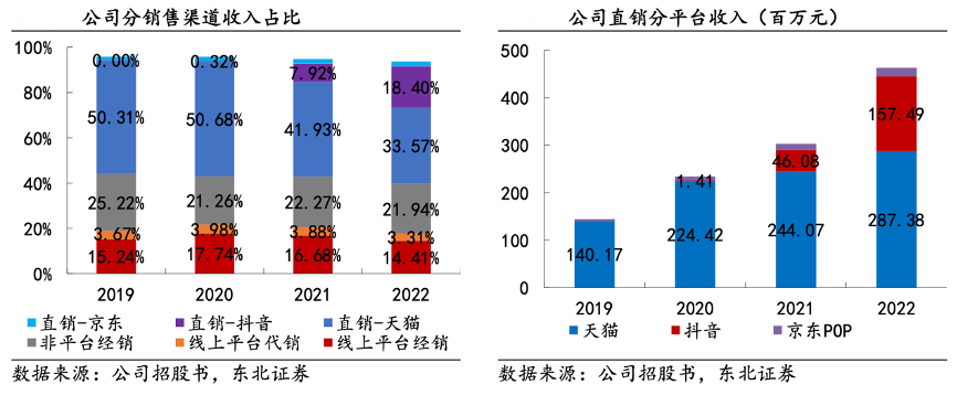 經(jīng)典案例:根據(jù)公司招股書、東北證券等綜合資訊表明,潤本目前以天貓、京東、拼多多和抖音等電商平臺銷售為主,其中最早布局天貓平臺,通過長期渠道建設,逐漸掌握成熟的線上運作模式,并積累起龐大的線上客戶資源,市場份額快速提升,潤本品牌 2020-2022 年連續(xù)三年在天貓平臺的蚊香液銷售額排名第一,市占率分別為 16.42%、18.32%、19.99%。
