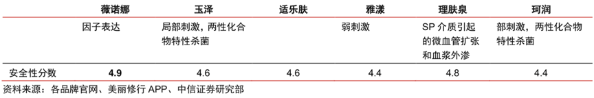 經(jīng)典案例:根據(jù)各品牌官網(wǎng)、美麗修行APP、中信證券研究部等綜合資訊表明,相比國外競(jìng)品品牌的“神泉水”、“活泉水”概念(理膚泉、雅漾等),薇諾娜主打的 “草本”概念,更貼合中國文化,因而更容易被國人接受。由于薇諾娜的舒敏修護(hù)產(chǎn)品以天然成分為主,不添加防腐劑,產(chǎn)品安全性能相對(duì)同類競(jìng)品更加突出。