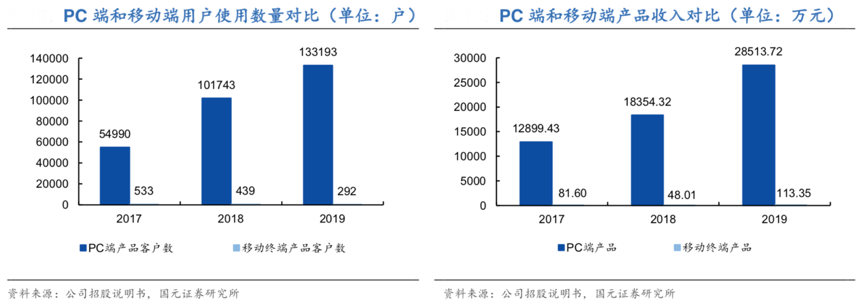 經(jīng)典案例:根據(jù)公司招股說明書、國元證券研究所等綜合資訊表明,福昕軟件2019 年P(guān)C 端產(chǎn)品銷售收入達 2.85 億元,共有 13.32 萬用戶使用 PC 端產(chǎn)品。其主要收入來源于 PC 端產(chǎn)品,主要原因是受到設(shè)備屏幕、使用習(xí)慣等方面的限制,移動終端用戶的編輯需求較低,主要需求以閱讀器等免費產(chǎn)品為主。