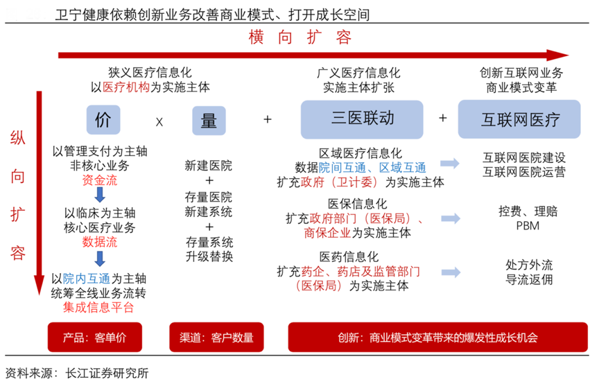 經典案例:根據公司官網、長江證券研究所等綜合資訊表明,衛寧健康以傳統業務項目制等推進業務穩定成長,依賴創新業務改善商業模式、打開成長空間。