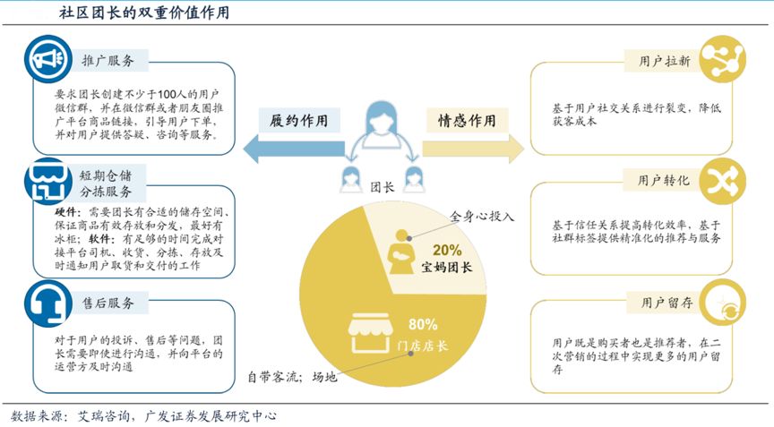經(jīng)典案例:根據(jù)艾瑞咨詢、廣發(fā)證券發(fā)展研究中心等綜合資訊表明,結(jié)合美團(tuán)優(yōu)選團(tuán)長(zhǎng)端申請(qǐng)合同明文規(guī)定,團(tuán)長(zhǎng)需要承擔(dān)推廣、分揀、短 期儲(chǔ)存、售后四個(gè)具體職責(zé),來滿足用戶相關(guān)需求。其中的推廣服務(wù)最為顯著,美團(tuán)優(yōu)選要求 團(tuán)長(zhǎng)創(chuàng)建不少于100人的用戶微信群,并在微信群或者朋友圈推廣平臺(tái)商品鏈接,引導(dǎo)用戶下單,并對(duì)用戶提供答疑、咨詢等服務(wù)。