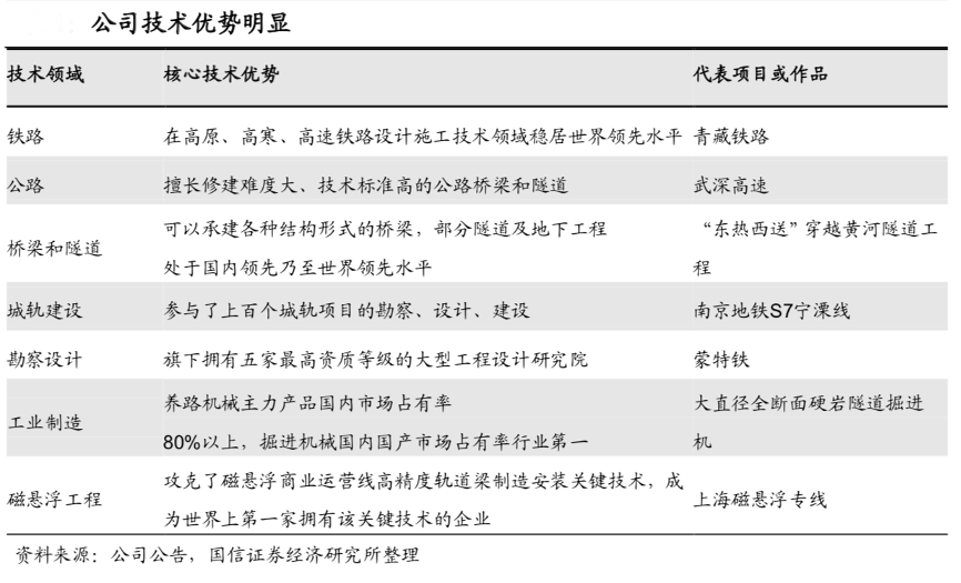 經(jīng)典案例:根據(jù)公司官網(wǎng)、國信證券經(jīng)濟(jì)研究所等綜合資訊表明,中國鐵建公司攻克了勘察、設(shè)計(jì)、修建青藏鐵路面臨的高原多年凍土、生態(tài)脆弱、高原 缺氧三大技術(shù)難題,在高原、高寒、高速鐵路設(shè)計(jì)施工技術(shù)領(lǐng)域已經(jīng)穩(wěn)居世界領(lǐng)先水平。同時,其大直徑全斷面硬巖隧道掘進(jìn)機(jī)、雙護(hù)盾硬巖隧道掘進(jìn)機(jī) 等地下工程裝備填補(bǔ)了國內(nèi)空白,窄軌搗固車、窄軌配碴整形車等大型養(yǎng)路機(jī)械已達(dá)到國際領(lǐng)先水平,并且實(shí)現(xiàn)了出口。