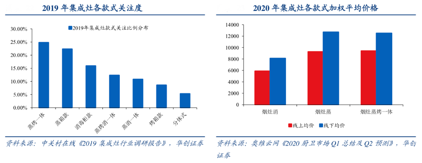 經典案例:根據中關村在線、奧維云網、華創證券等綜合資訊表明,蒸箱款代表的新功能模塊保持高市場關注度,且形成較高產品溢價。據中關村在線 用戶統計,至 2019 年集成灶關注度中,蒸烤一體款和蒸箱款位列前兩位,占比分別 為 24.8%、22.3%。同時據奧維數據 2020 年蒸箱款均價較煙灶消款式線上線下均高出約 57%,新功能模塊享受較高市場溢價。而火星人高占比的新模塊 SKU 比例促成其在這一產業升級浪潮中率先突圍。