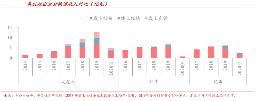 經(jīng)典案例:根據(jù)各公司公告、中泰證券研究所等綜合資訊表明,火星人“經(jīng)銷+線上”兩渠道表現(xiàn)亮眼:經(jīng)銷增速領(lǐng)先,電商為領(lǐng)頭羊。對比三家集成灶企業(yè)渠道收入,火星人主要優(yōu)勢來源于線上經(jīng)銷、線上直營模式。其線上直營表現(xiàn)遠超對手,其線上占比為四家可比上市企業(yè)最高(23%)。