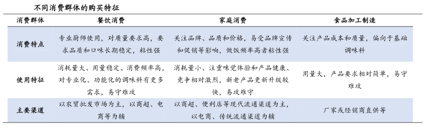 激活新調味消費,分層次放大用戶消費效用。傳統調味品企業大多依賴挖掘傳統的調味工藝,依托優質的產品調味點亮新客戶消費,而新藍海市場的創新經營在于全面細分調味的消費場景,滿足在外、居家、休閑等全方位調味需求,以產業級品牌戰略引導調味新消費,以產業級品牌營銷策劃點亮調味新場景。