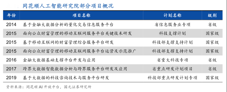 經(jīng)典方法:根據(jù)同花順AI開放平臺、國元證券研究院等綜合資訊表明,近年來同花順人工智能研究院持續(xù)加大對大數(shù)據(jù)、人工智能等領(lǐng)域的研發(fā)投入,其自 2009 年起共承接 17 項(xiàng)國家級、省級重點(diǎn)項(xiàng)目,為推進(jìn)基于 AI 技術(shù)的解決方案作出了較大的貢獻(xiàn)。