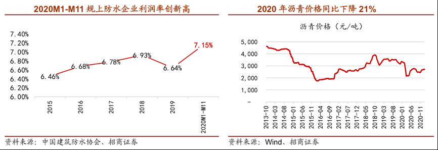 經典案例:根據中國建筑防水協會、wind、招商證券等綜合資訊表明,瀝青作為主要原材料,占成本比例 20%以上,但瀝青作為大宗商品,企業擁有的議價權較為薄弱。為了應對未來原材料價格上漲的風險,龍頭企業東方雨虹、科順股份均擁有自己的原材料生產線作為倉儲,并依靠集中采購降低其它原材料成本,增厚利潤空間。