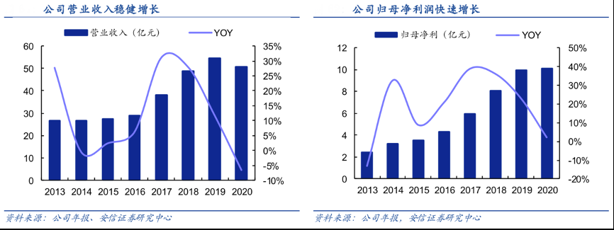 經(jīng)典案例:根據(jù)公司年報(bào)、安信證券研究中心等綜合資訊表明,周大生公司是以鑲嵌品類(lèi)為特色的珠寶龍頭 ,采用輕資產(chǎn)模式專注于產(chǎn)業(yè)鏈優(yōu)質(zhì)資源整合。公司產(chǎn)品包括鑲嵌首飾和素金首飾,其中鑲嵌類(lèi)為公司的優(yōu)勢(shì)品類(lèi),2019 年鑲嵌類(lèi)實(shí)現(xiàn)收入 30 億 元,實(shí)現(xiàn)毛利 8.05 億(占比達(dá) 41%)。其重心聚焦渠道建設(shè)和品牌運(yùn)營(yíng),上市以來(lái)收入、利潤(rùn)均實(shí)現(xiàn)亮眼增長(zhǎng),2020 年收入/歸母凈利潤(rùn)分別為 50.84 億元/10.13 億元。