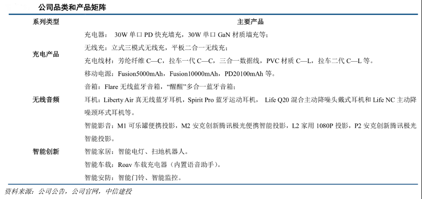 經(jīng)營案例:根據(jù)公司公告、公司官網(wǎng)和中信建投等綜合資訊表明,安克創(chuàng)新公司產(chǎn)品包括充電產(chǎn)品、無線音頻產(chǎn)品、智能創(chuàng)新產(chǎn)品三大類。相比其他跨境同業(yè),其品類聚焦消費電子,突出技術(shù)特點,品類間協(xié)同性強,便于強化消費者整體認知框架。