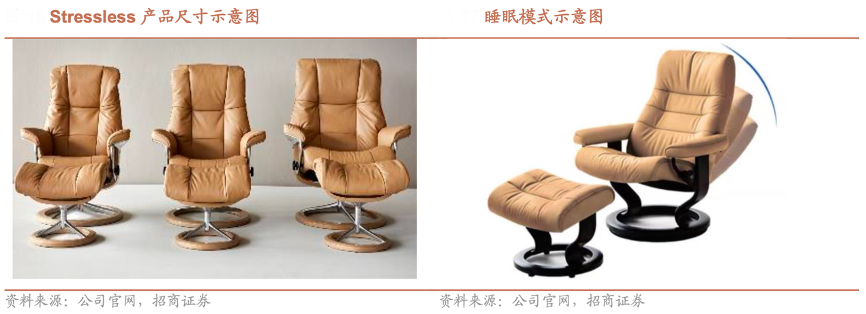 經典案例:根據公司官網、招商證券等綜合資訊表明,Stressless 產品最大的特點就是舒適。Stressless 舒適椅經美國脊醫協會認證,對脊柱亞健康人士有良好的保健康復作用,坐多久都不累,能讓腰肌、背肌、 頸肌完全放松而不強直,緩解肌肉勞損的癥狀。1999年推出睡眠和閱讀新功能,通過簡單的手部動作可以控制打開相應的模式,將頭枕設置到舒適的位置,自動提供頸部、腰部、背部、腿部的支撐,更好地享受舒適時刻。
