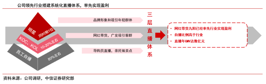 經(jīng)典案例:根據(jù)公司調(diào)研、中信證券研究部等綜合資訊表明,九陽(yáng)股份公司抓住在線直播的營(yíng)銷(xiāo)風(fēng)口機(jī)會(huì),拓展更為寬廣的傳插渠道,搭建完成了系統(tǒng)化的公司直播體系,主要由明星網(wǎng)紅、KOL、KOC等組成。在居家防疫期間,公司組織的“宅居免疫大挑戰(zhàn)”活動(dòng)中,通過(guò)線上、線下店鋪的直播、導(dǎo)購(gòu)員自播等各種形式,創(chuàng)造了億級(jí)觀看人數(shù)以上的自媒體傳播影響力。