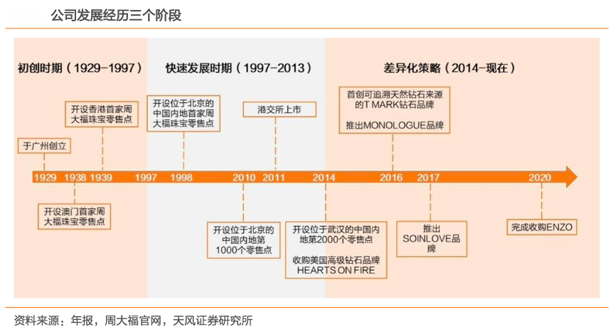 經典案例:根據公司年報、周大福官網和天風證券研究所等綜合資訊表明,周大福公司實現經營多個品牌,服務不同客戶群;打造了云柜臺促進線上線下渠道融合、D-ONE 平臺、云商 365。2021年其開啟以“實動力——零售擴張策略”及“云動力——智慧零售策略”構成的“雙動力策略”。